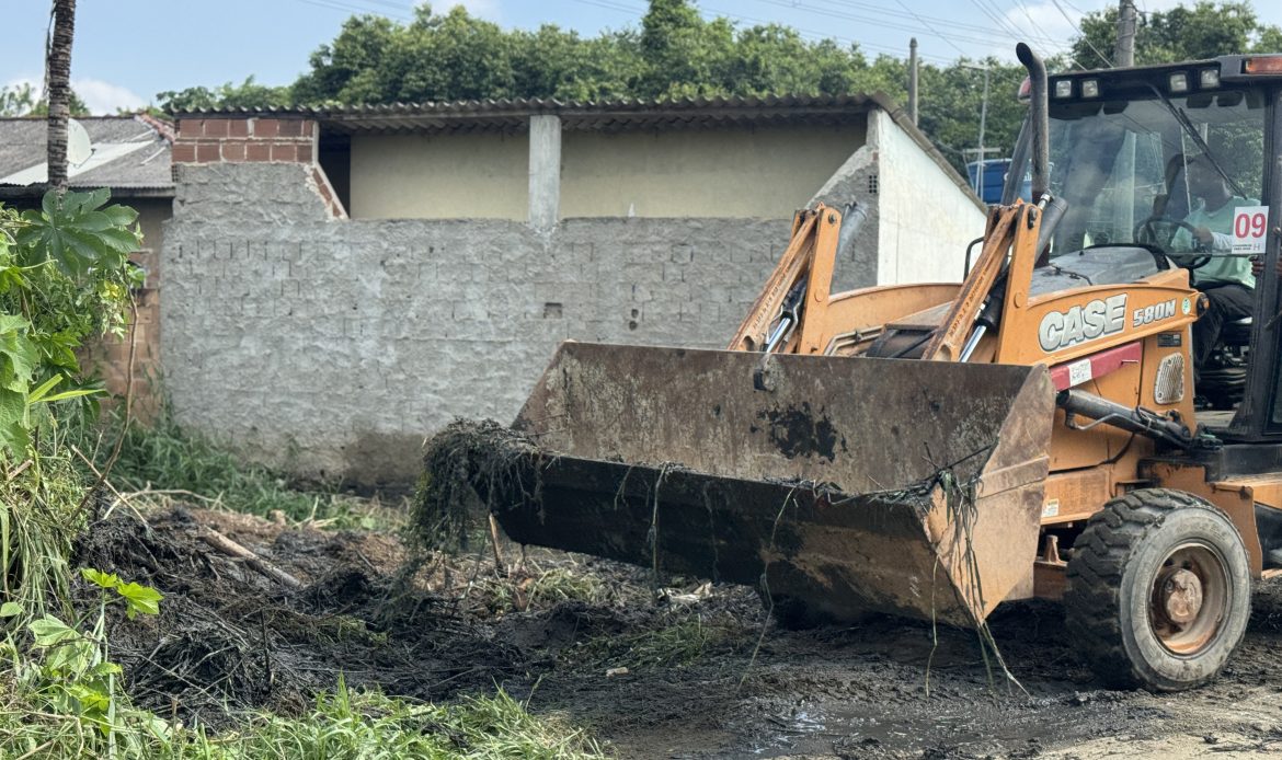 As equipes operacionais também avançaram nos bairros. No Marajoara, foi realizado o Limpa Rio manual na Rua Itália, ação preventiva para melhorar o escoamento da água e minimizar novos alagamentos. Já na Rua General Zenóbio, seguem os serviços de preparação da via, com foco na melhoria da trafegabilidade e na segurança dos moradores.