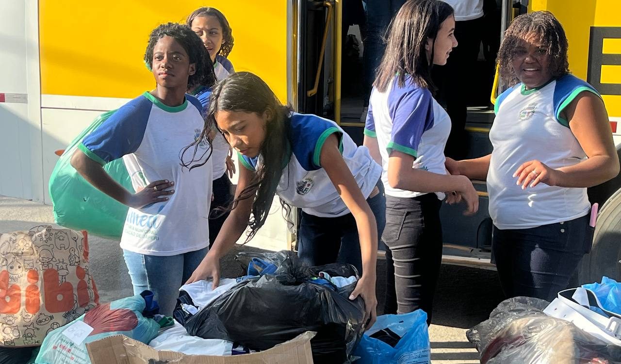 Peças arrecadadas durante o Arraiá solidário da escola foram levadas a abrigos da cidade pelos próprios estudantes